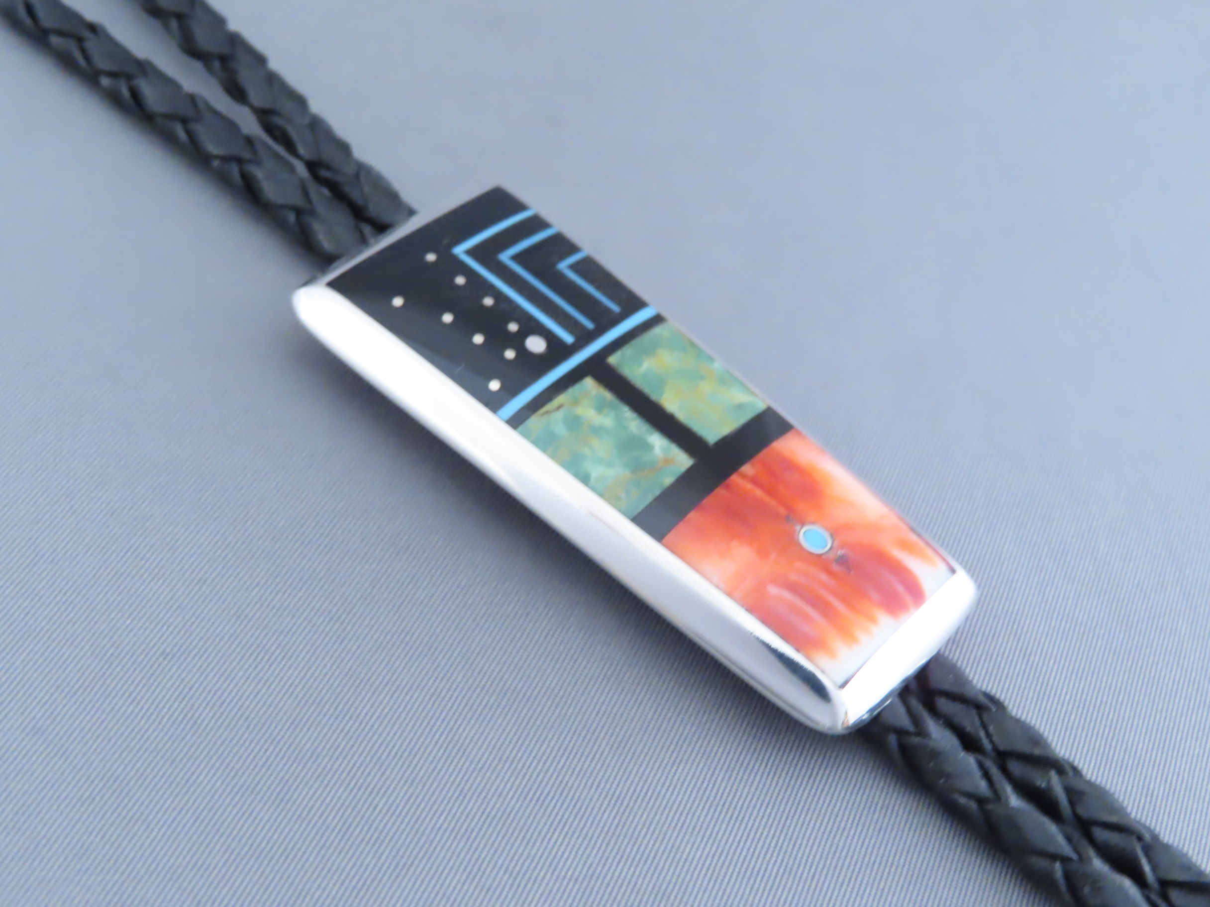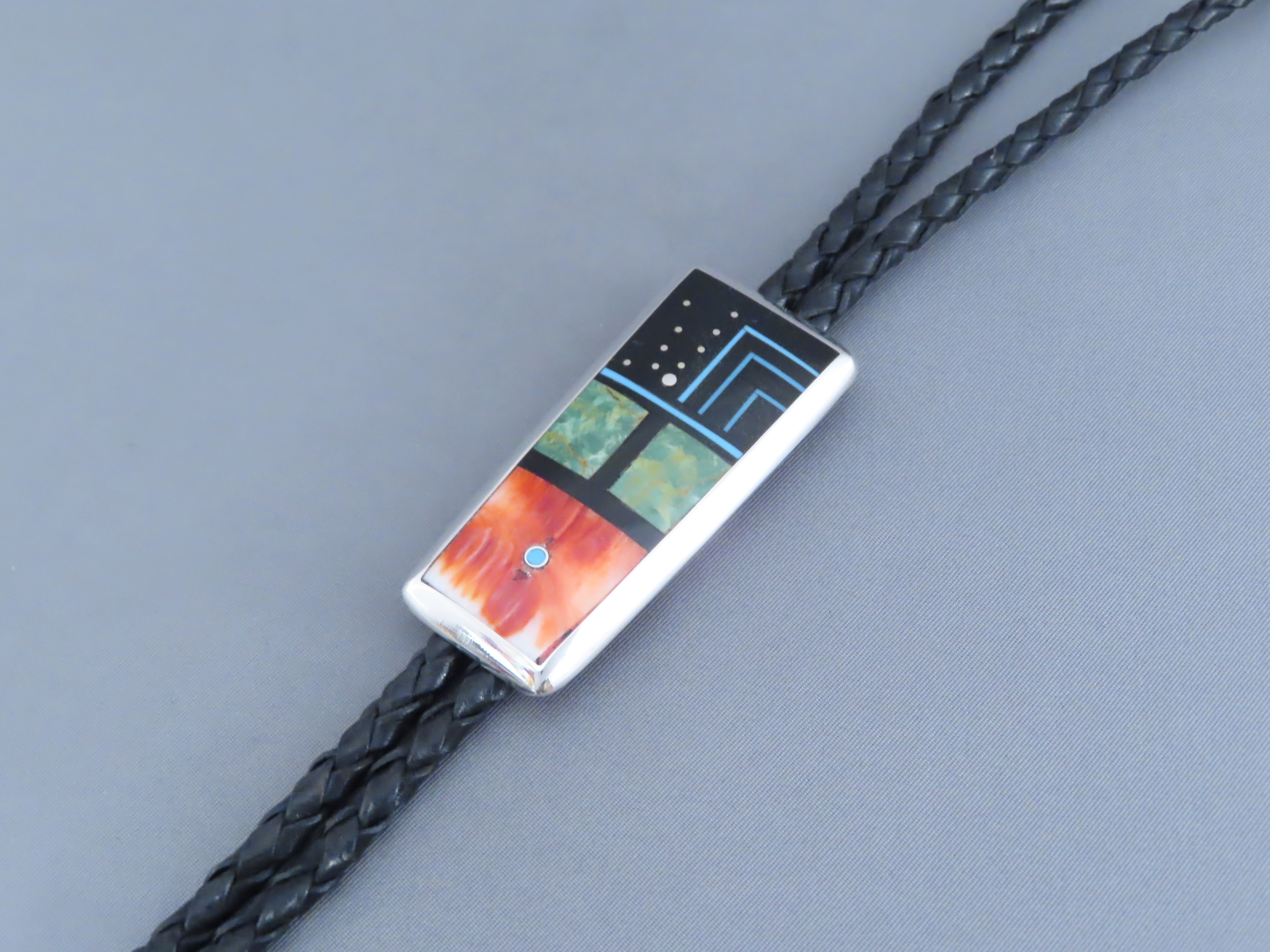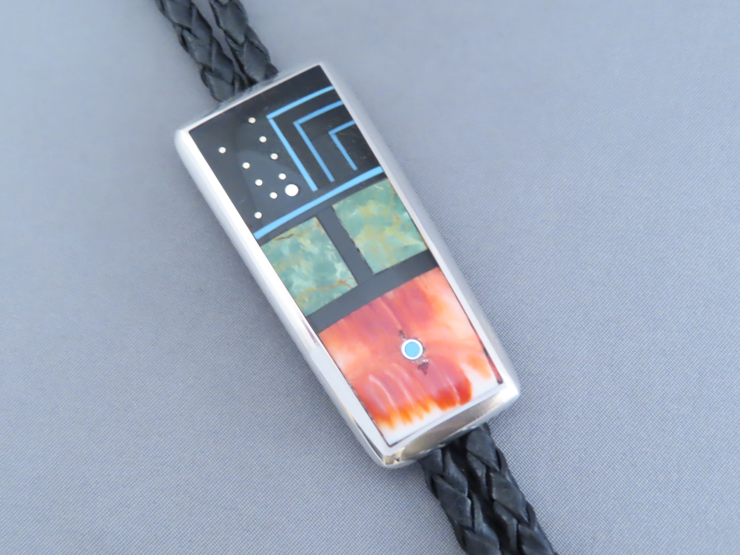 SOLDBolo Tie of Sterling Silver & Multi-Stone Inlay by Jimmy Poyer
