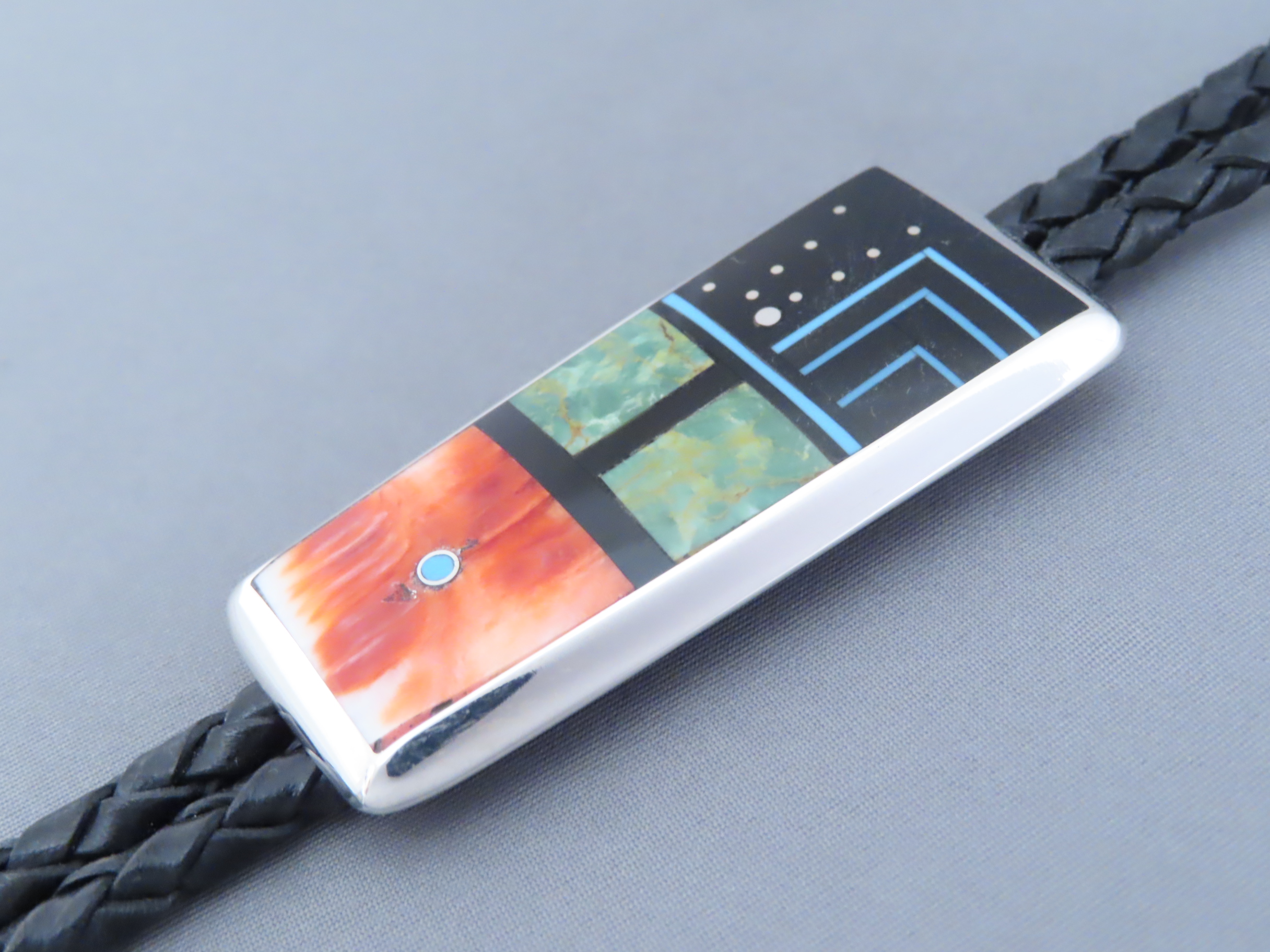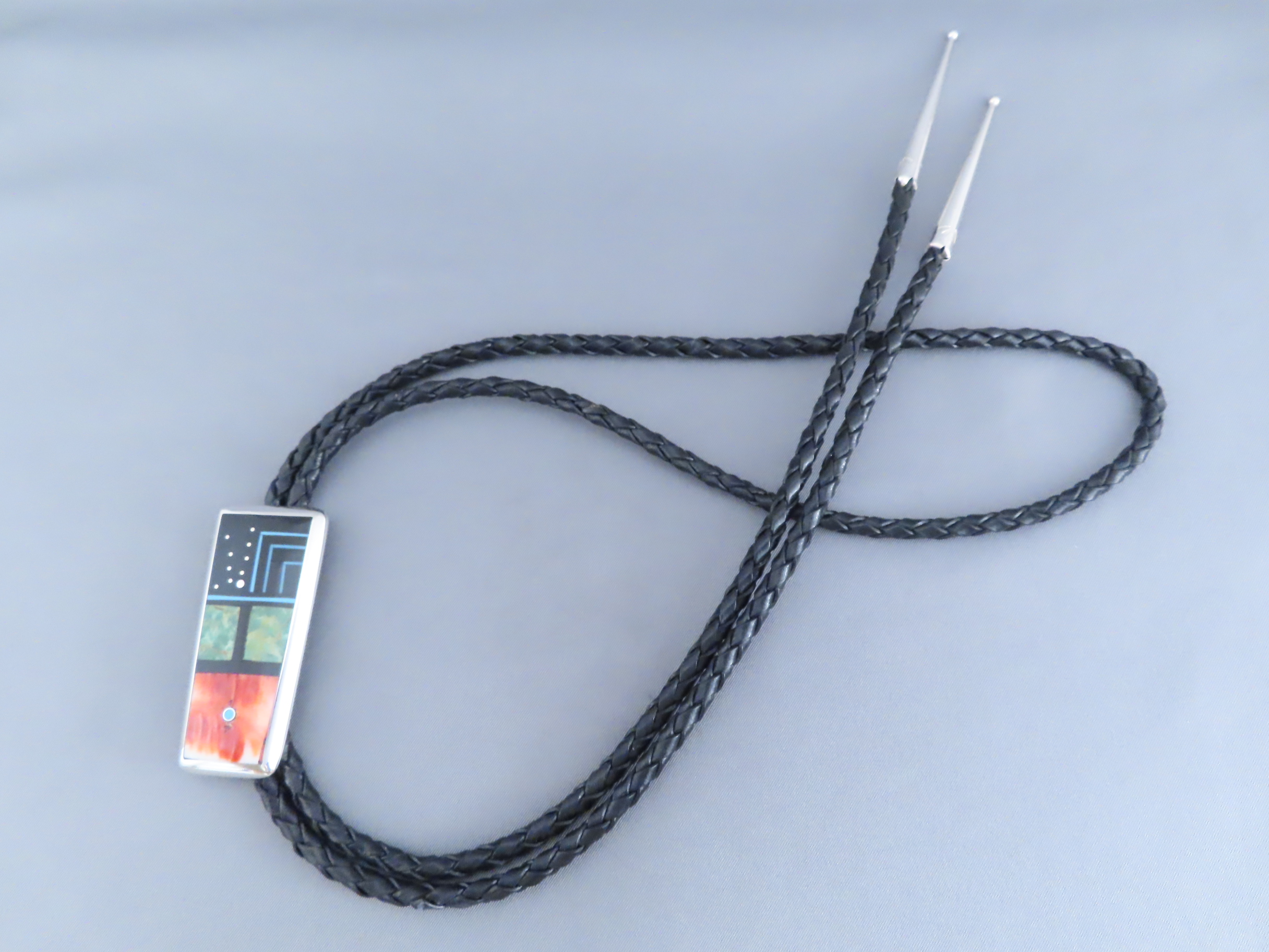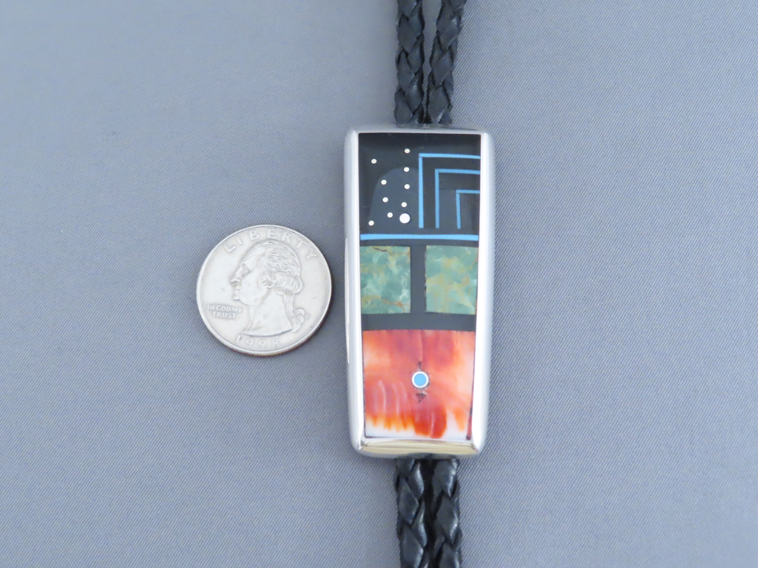 SOLDBolo Tie of Sterling Silver & Multi-Stone Inlay by Jimmy Poyer