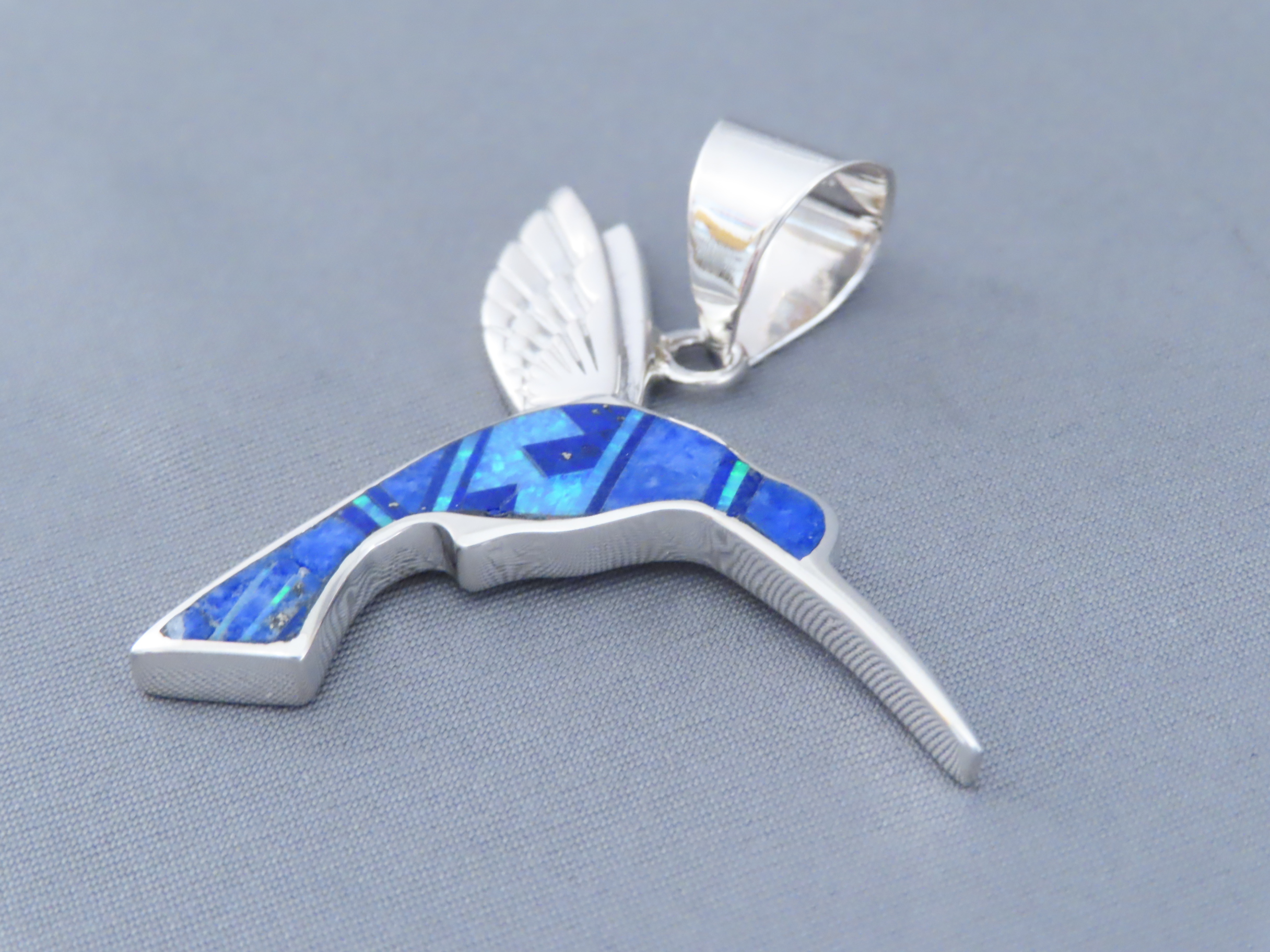 HUMMINGBIRD Pendant with Lapis & Opal Inlay