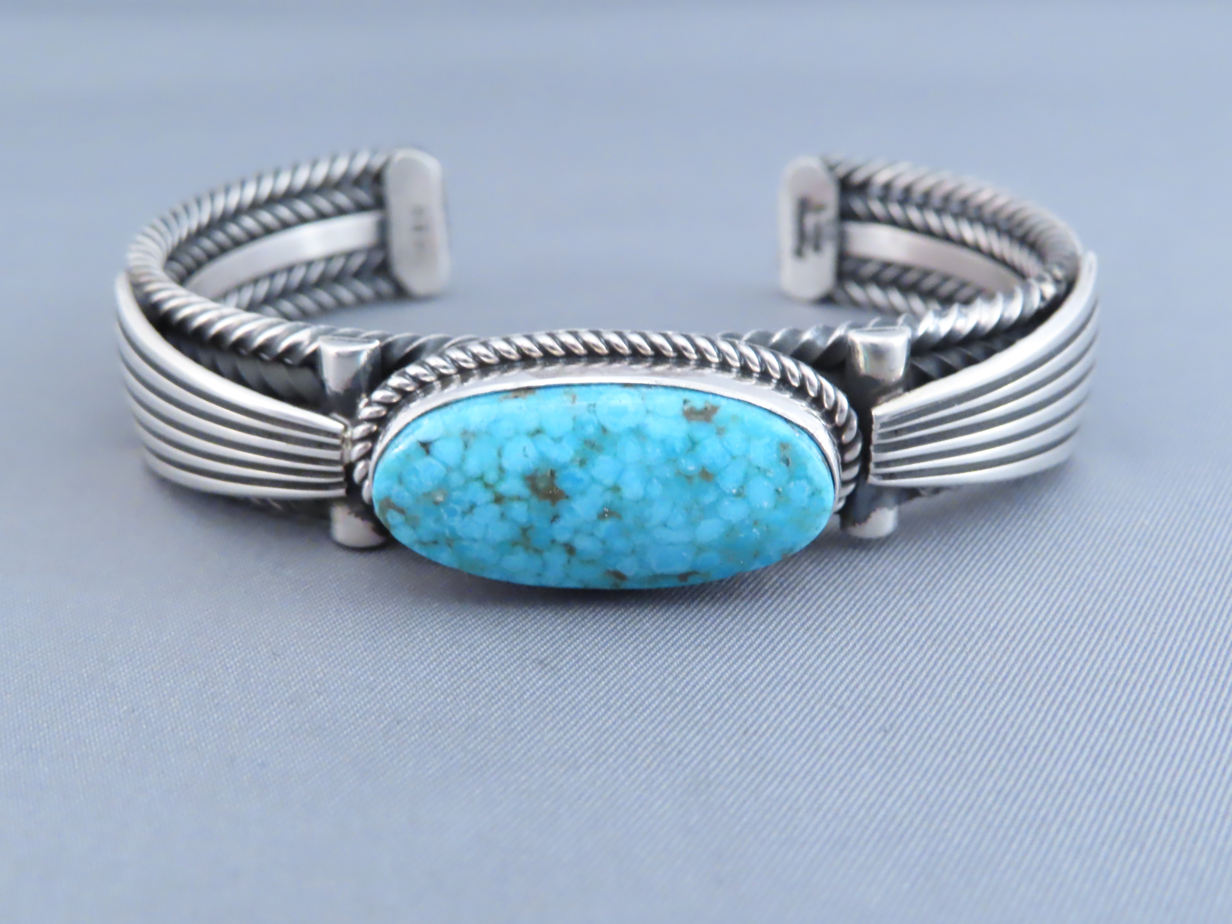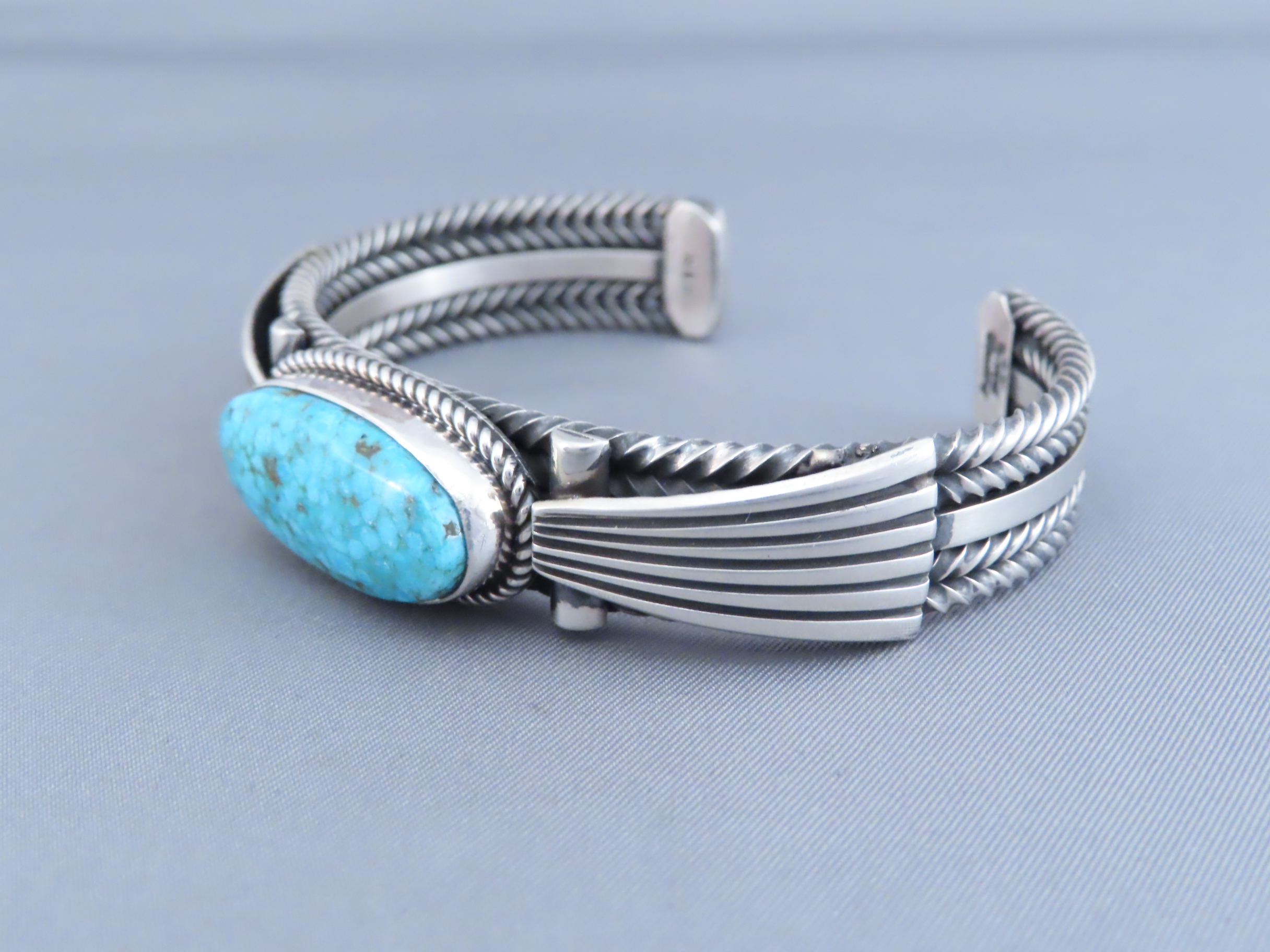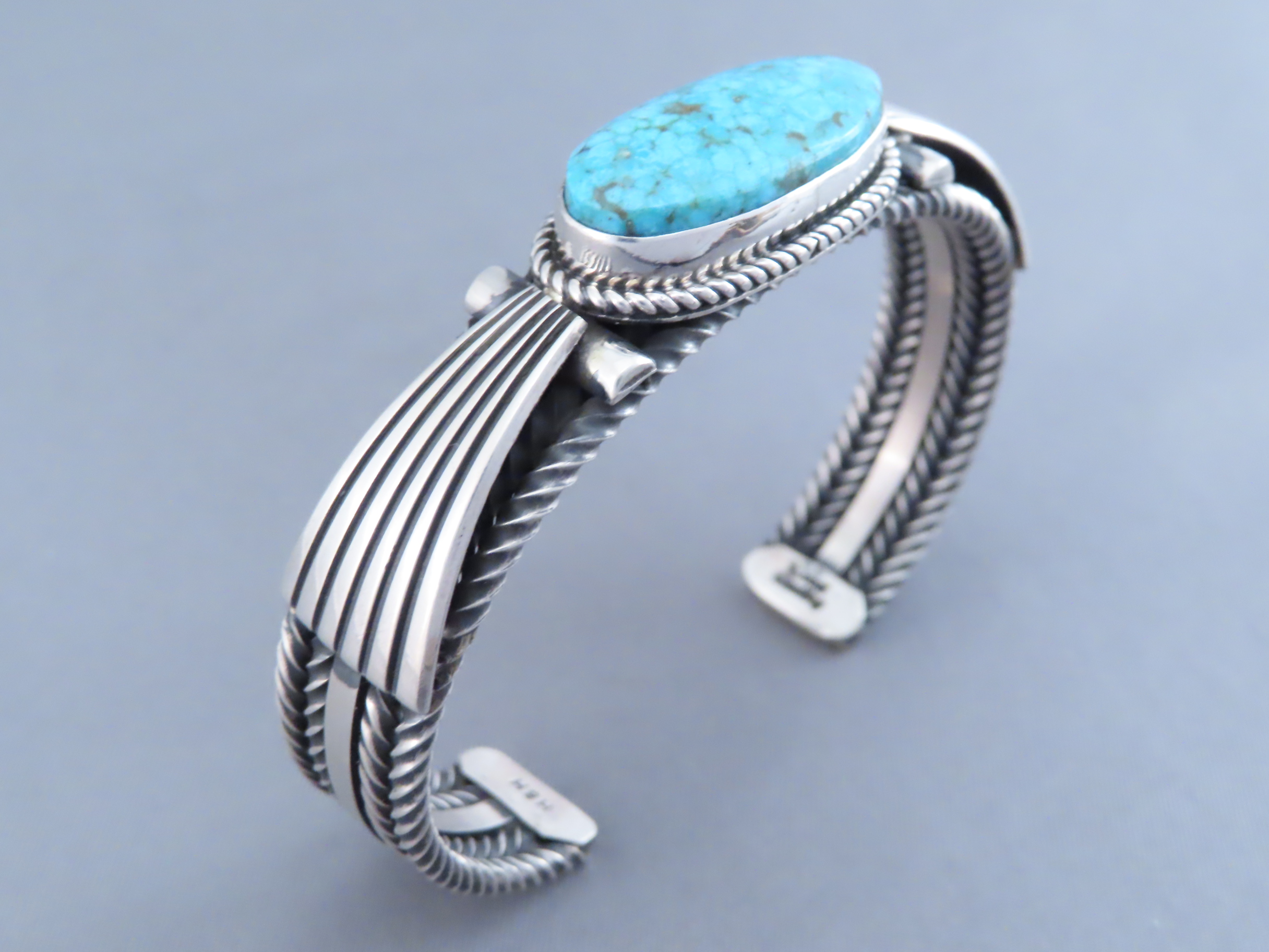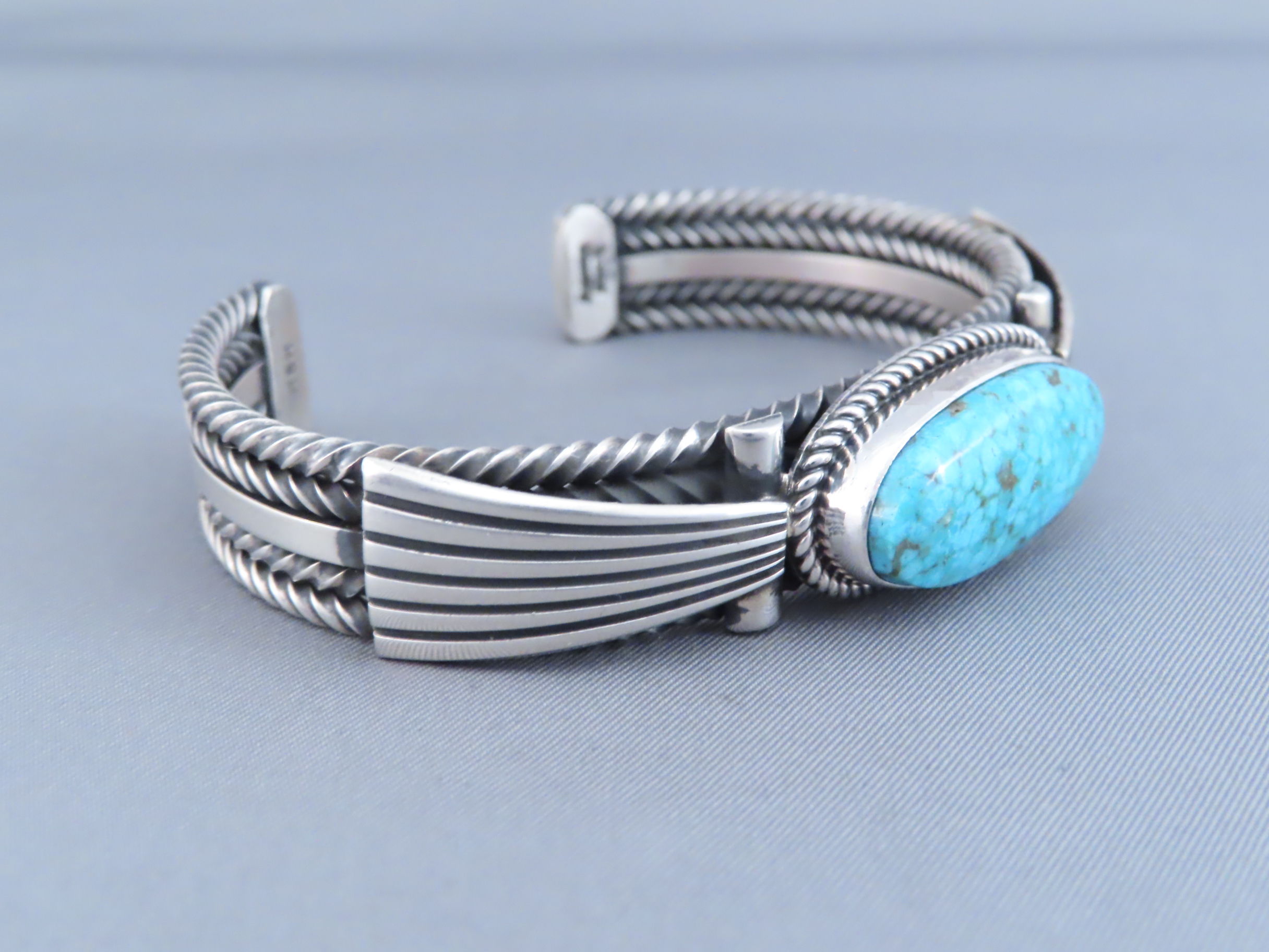 SOLDSterling Silver & Kingman Turquoise Bracelet by Albert Jake (Large Size!)