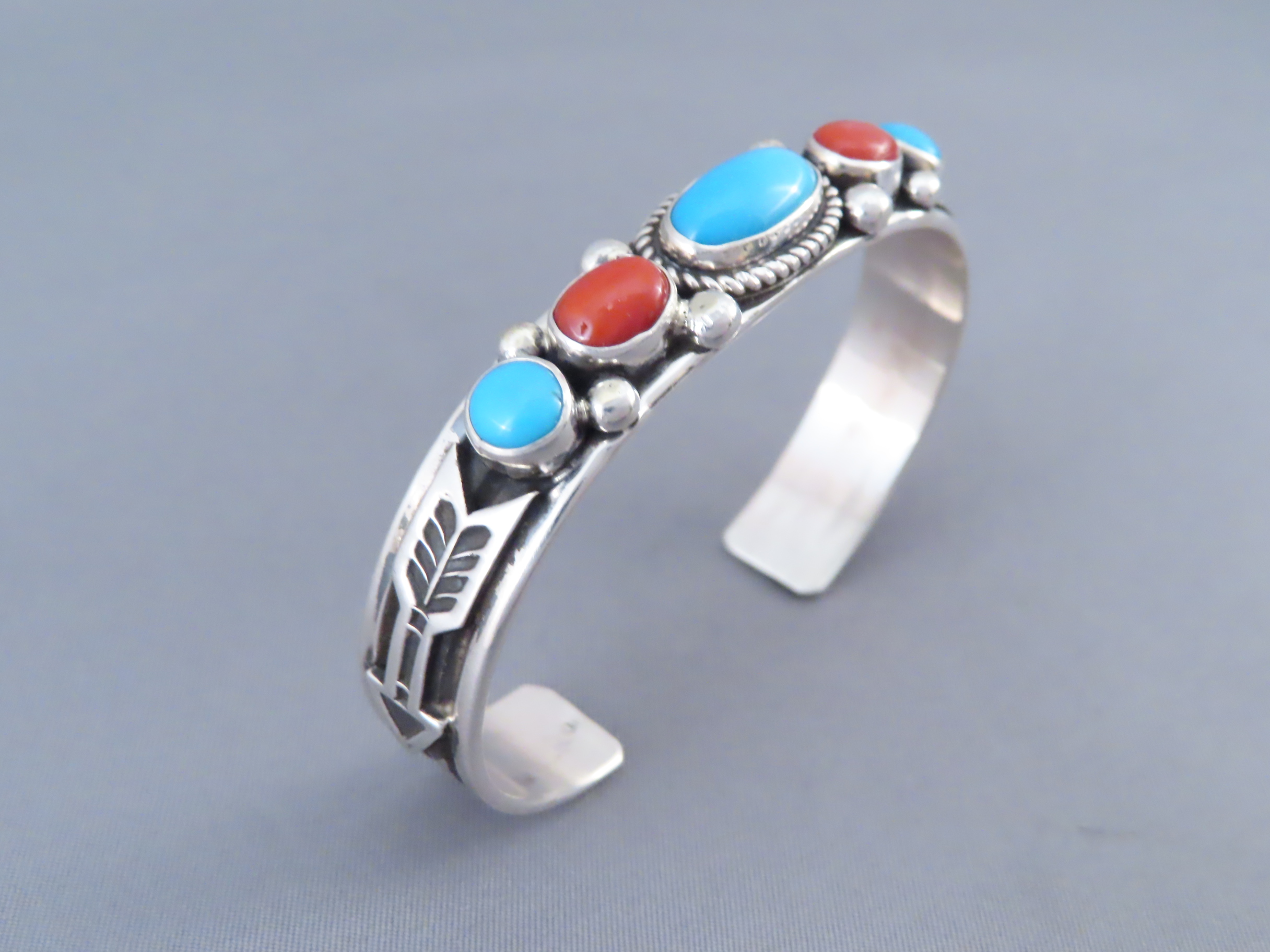 Coral & Turquoise Cuff Bracelet by Albert Jake