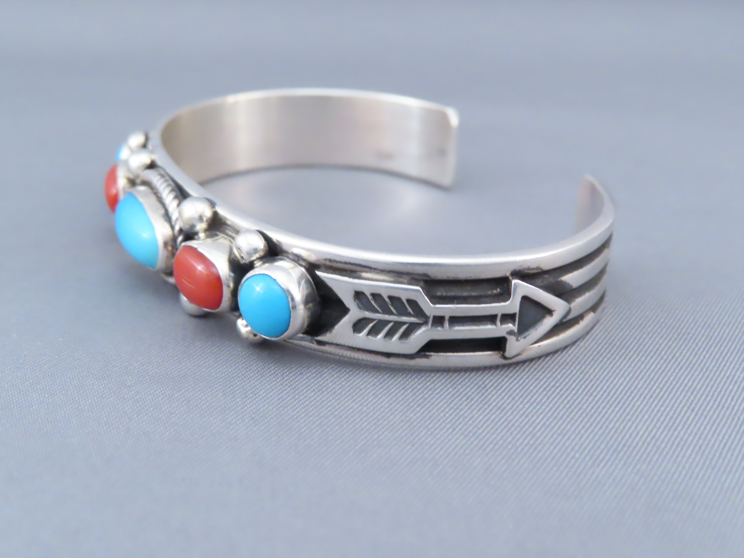 Multi-Stone Sterling Silver Cuff Bracelet (Turquoise & Coral)