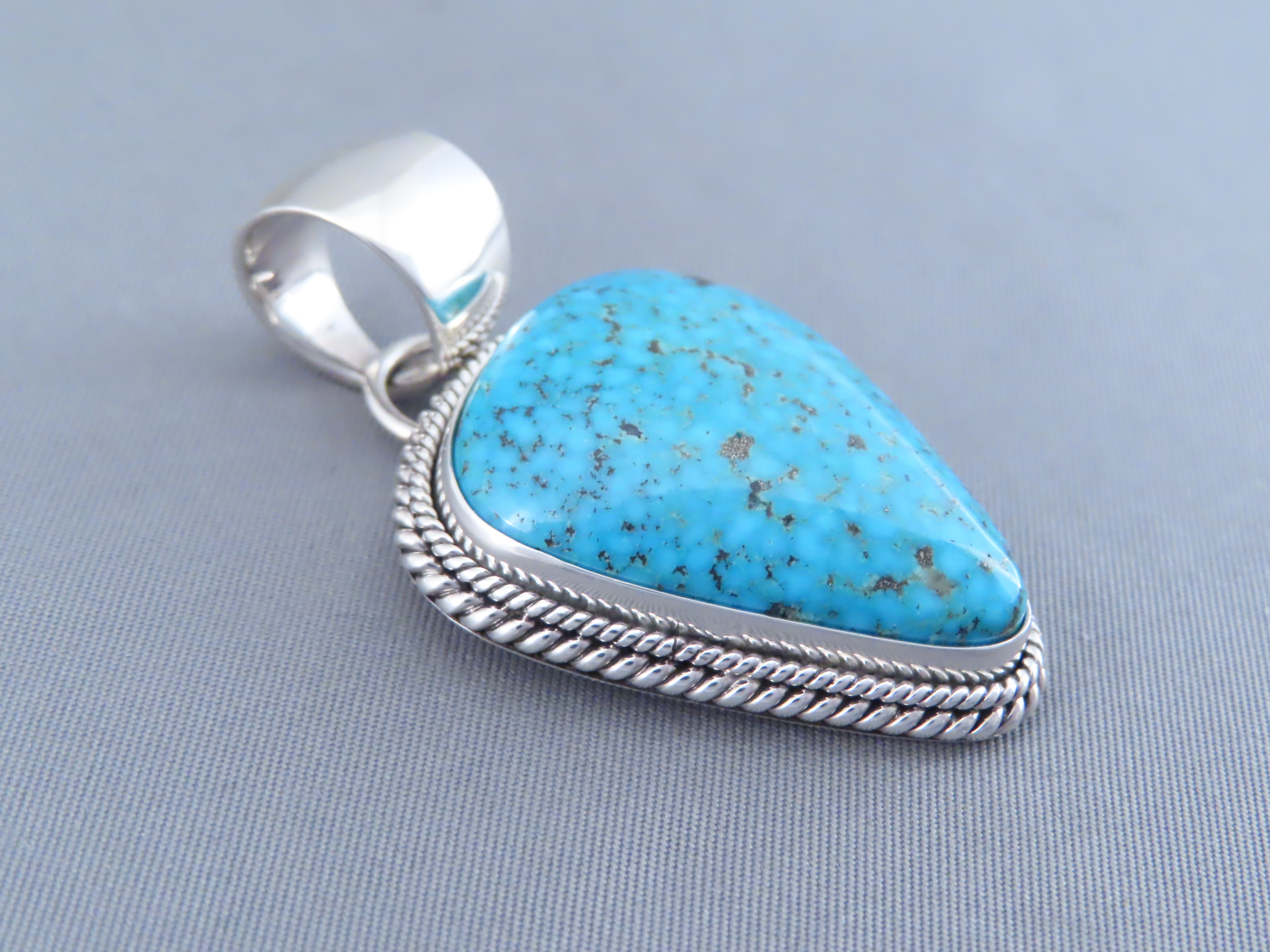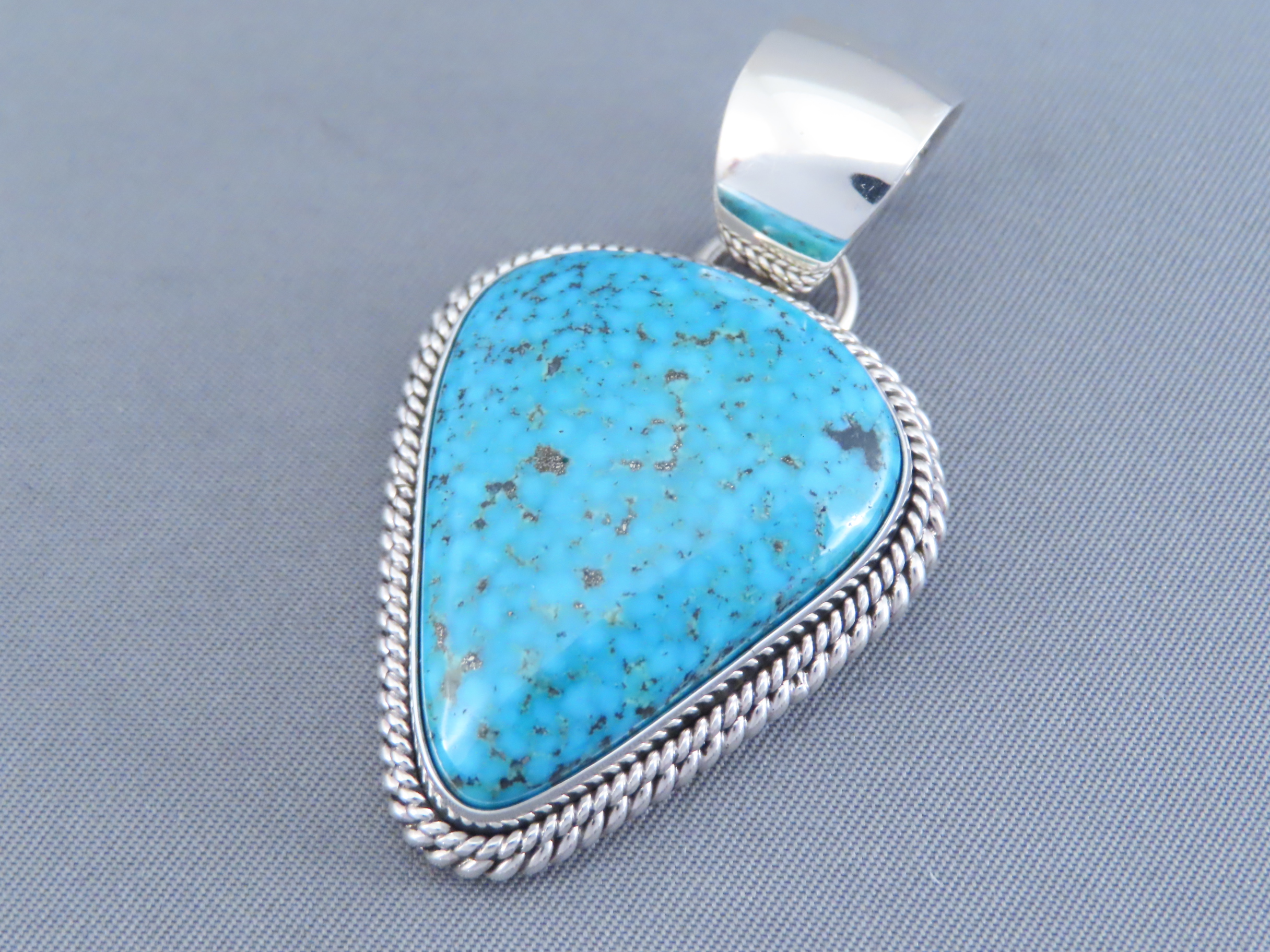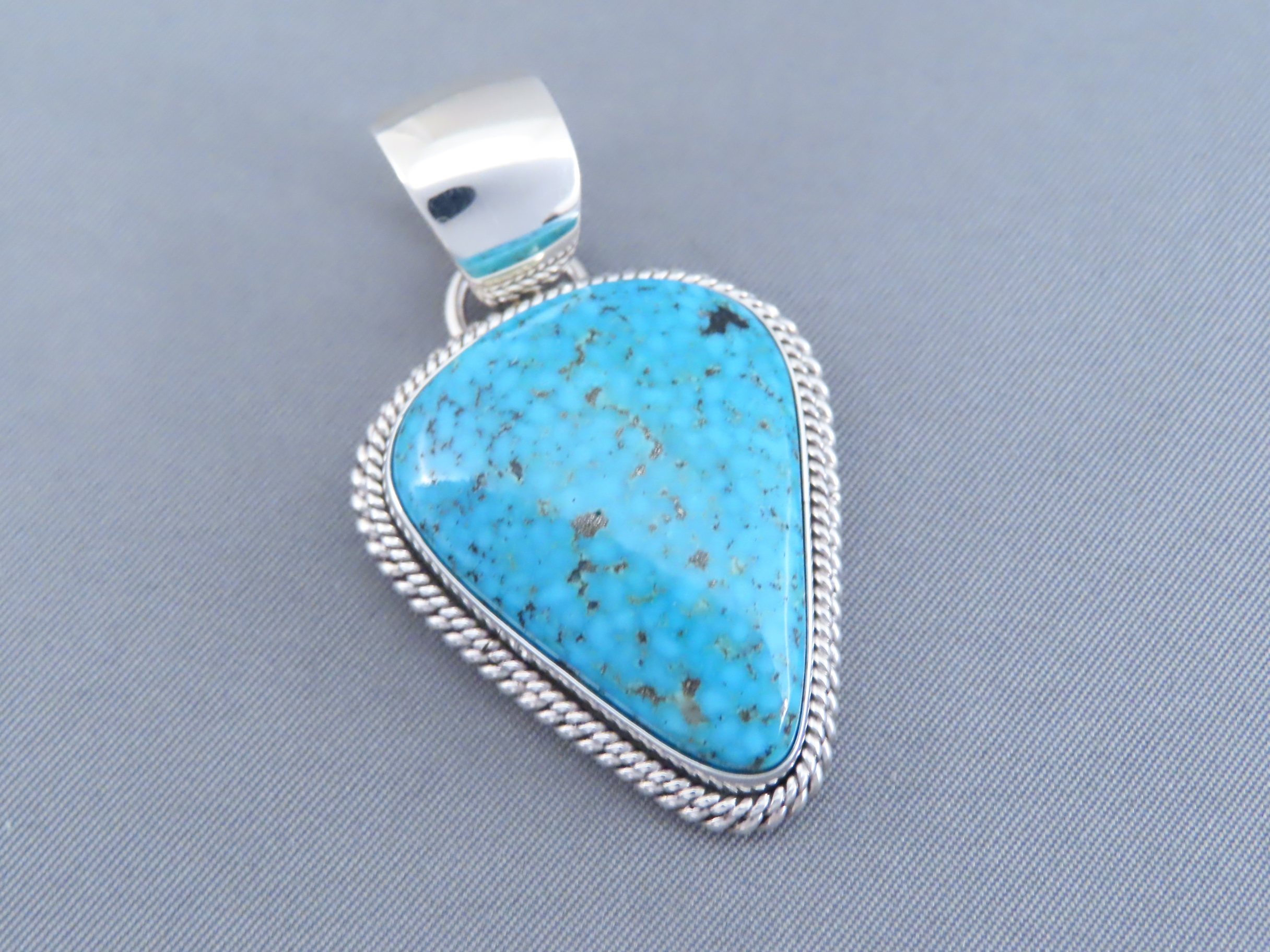 Blue Kingman Turquoise Pendant by Navajo jewelry artist, Artie Yellowhorse. VERY attractive mid-sized Kingman Turquoise stone in this lovely pendant. Exceptional contemporary Native American Jewelry-