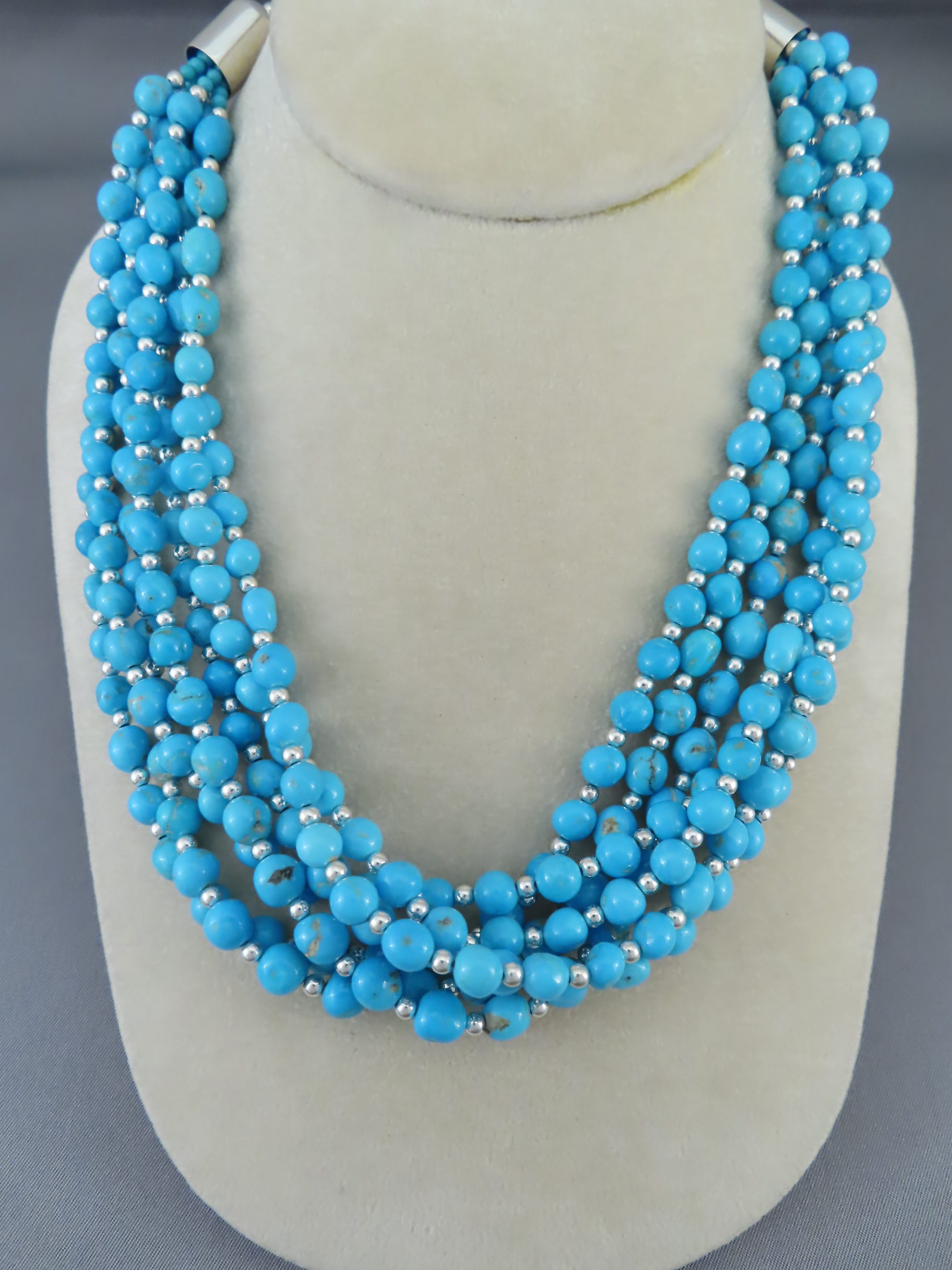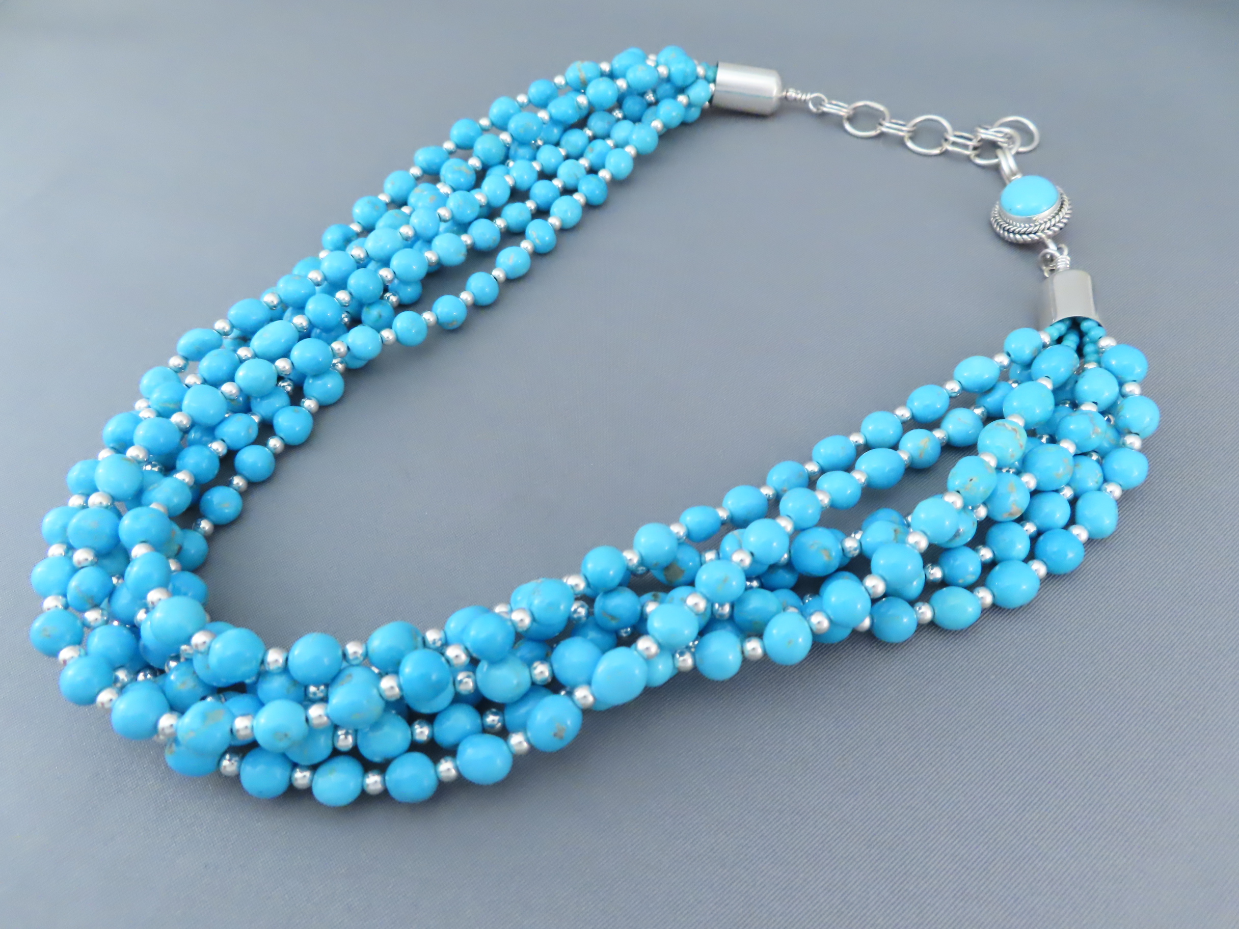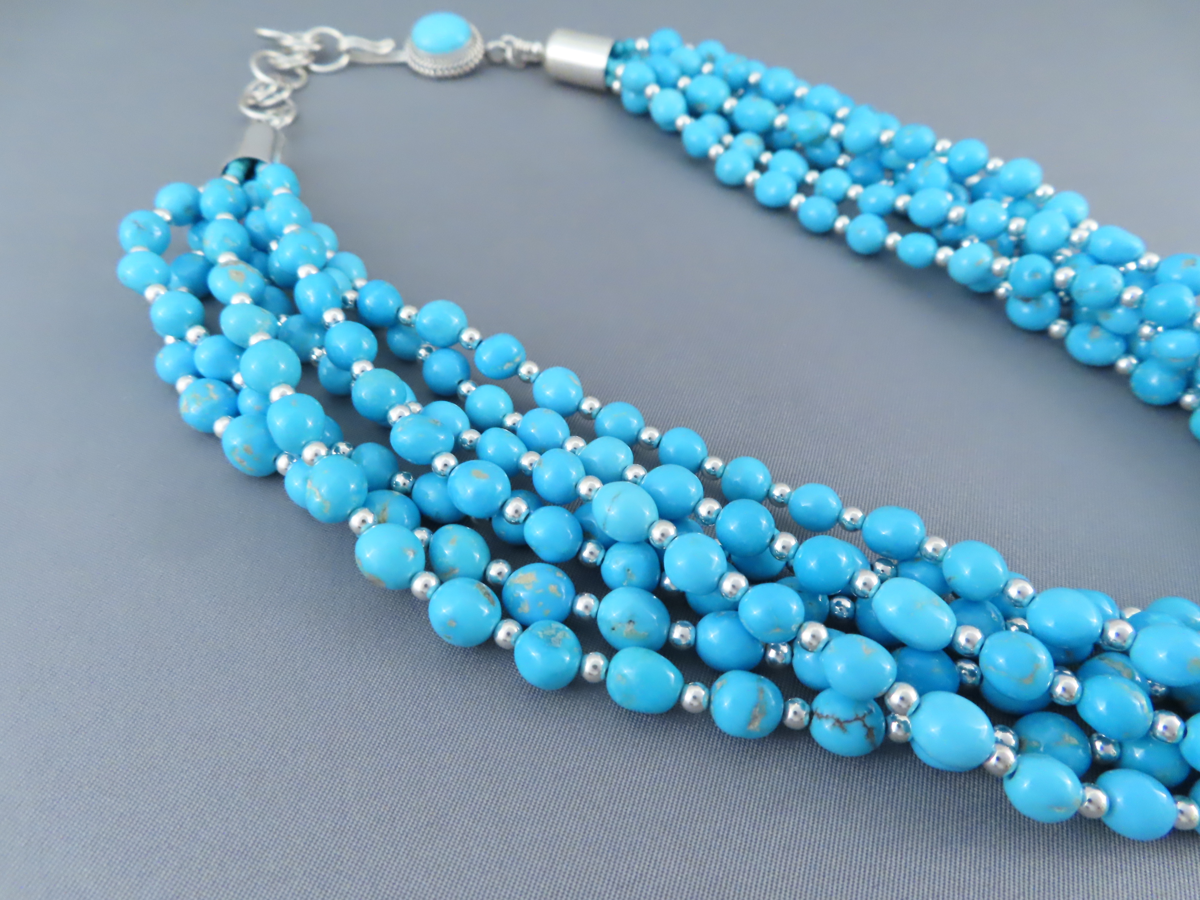 Beautiful Turquoise Necklace!! Full necklace of Sleeping Beauty Turquoise beads by Native American jewelry artist, Desiree Yellowhorse (Navajo). 7 strands! A beautifully full and vibrant Sleeping Beauty Turquoise necklace-