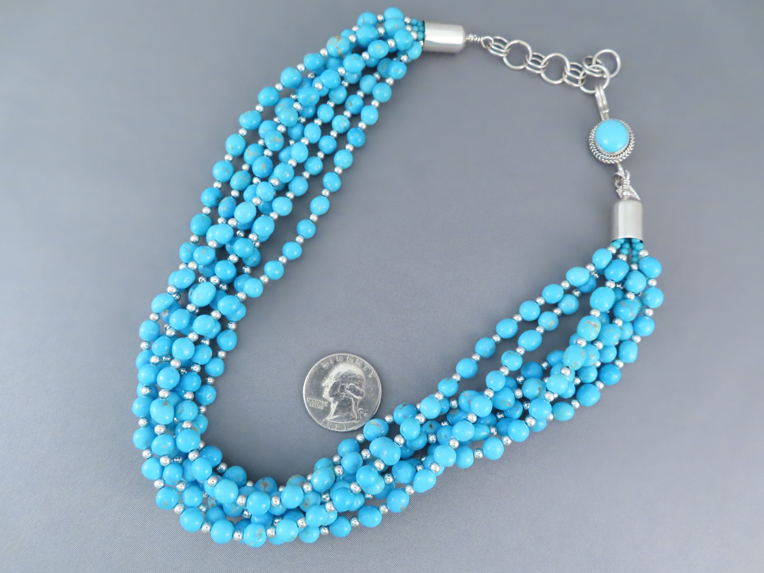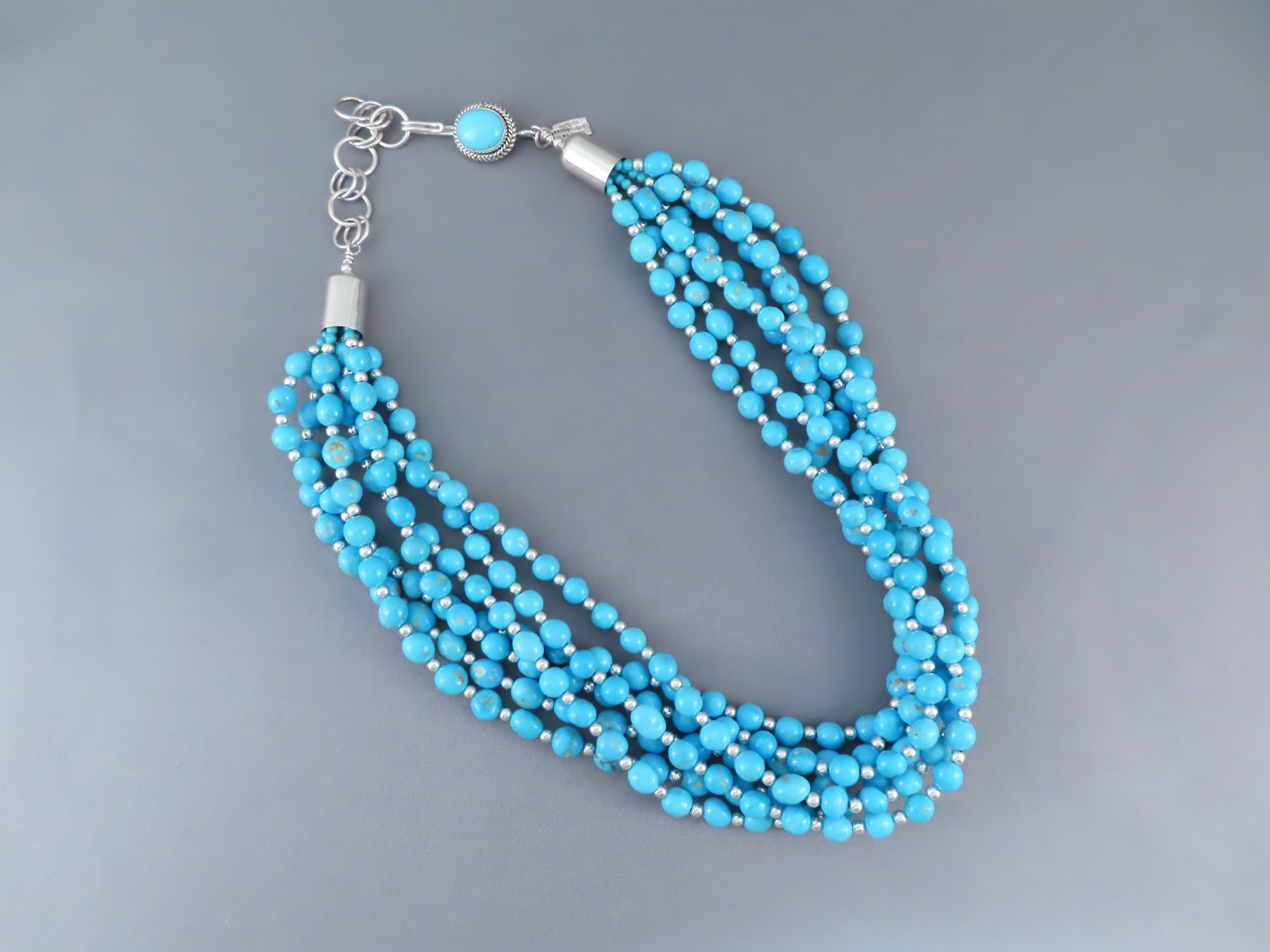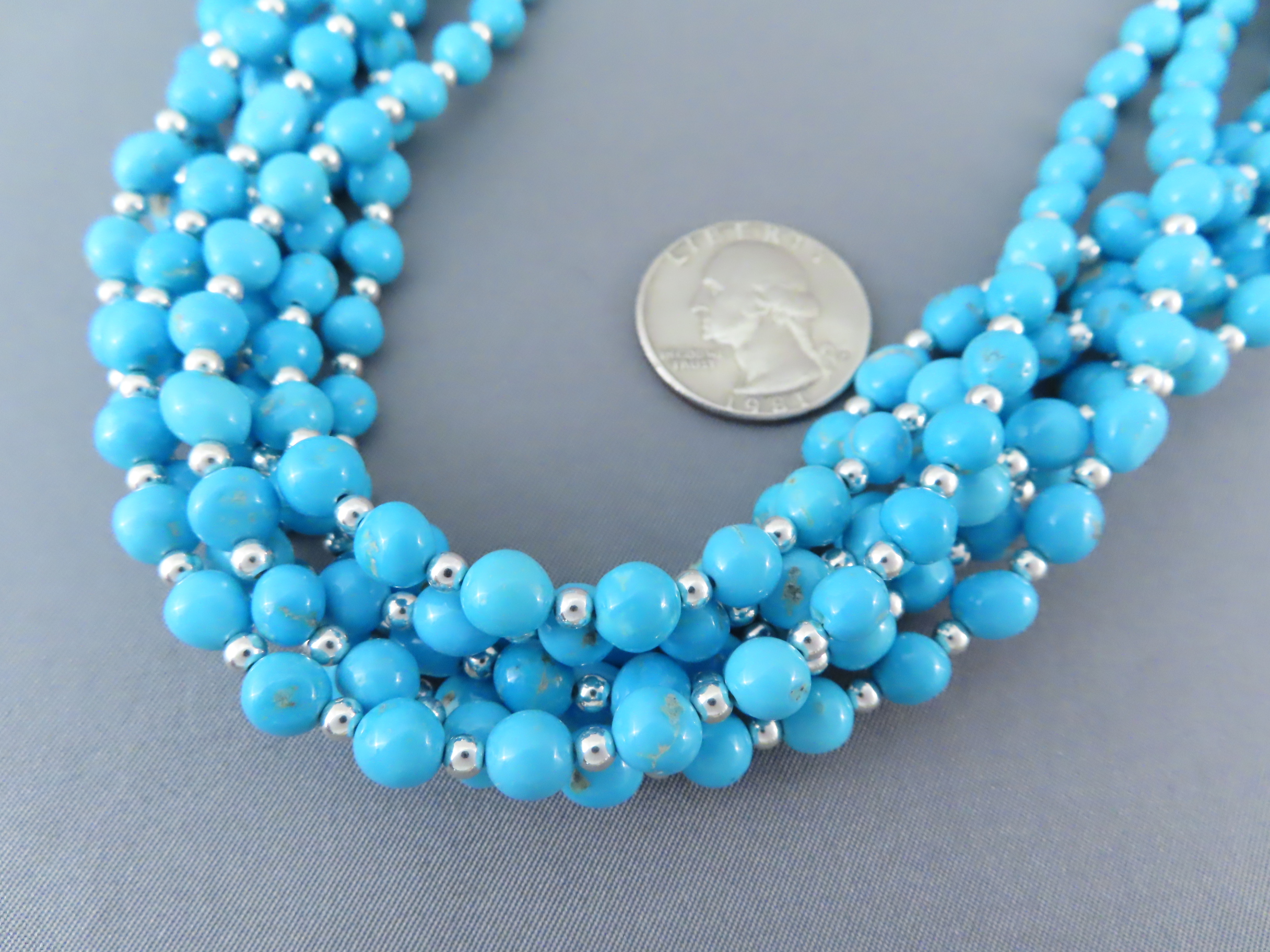 Beautiful Turquoise Necklace!! Full necklace of Sleeping Beauty Turquoise beads by Native American jewelry artist, Desiree Yellowhorse (Navajo). 7 strands! A beautifully full and vibrant Sleeping Beauty Turquoise necklace-