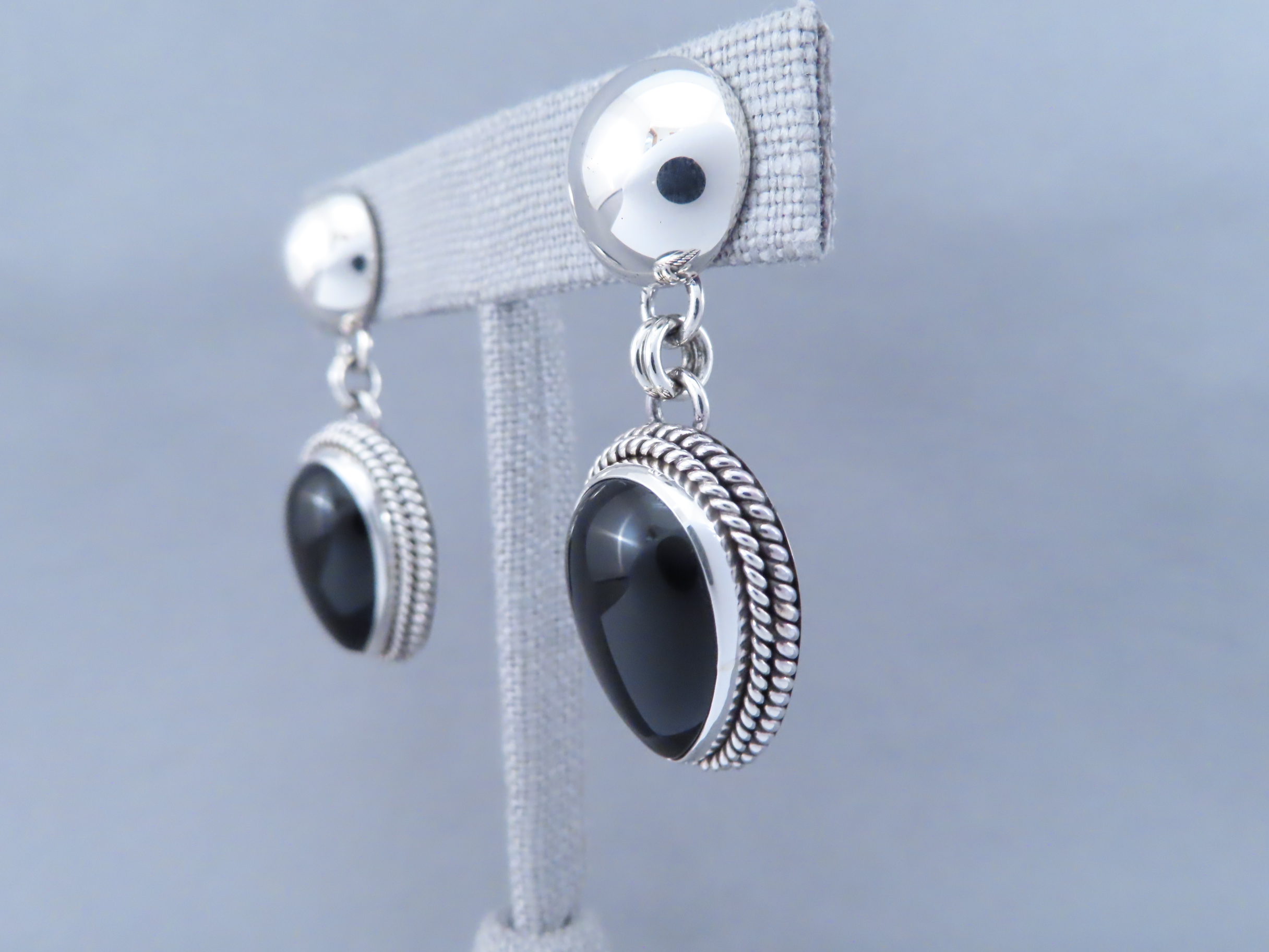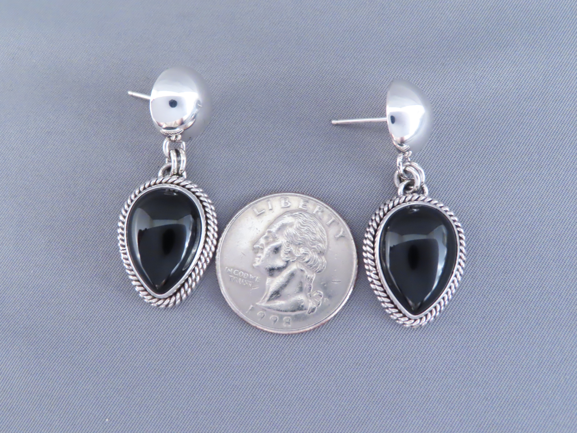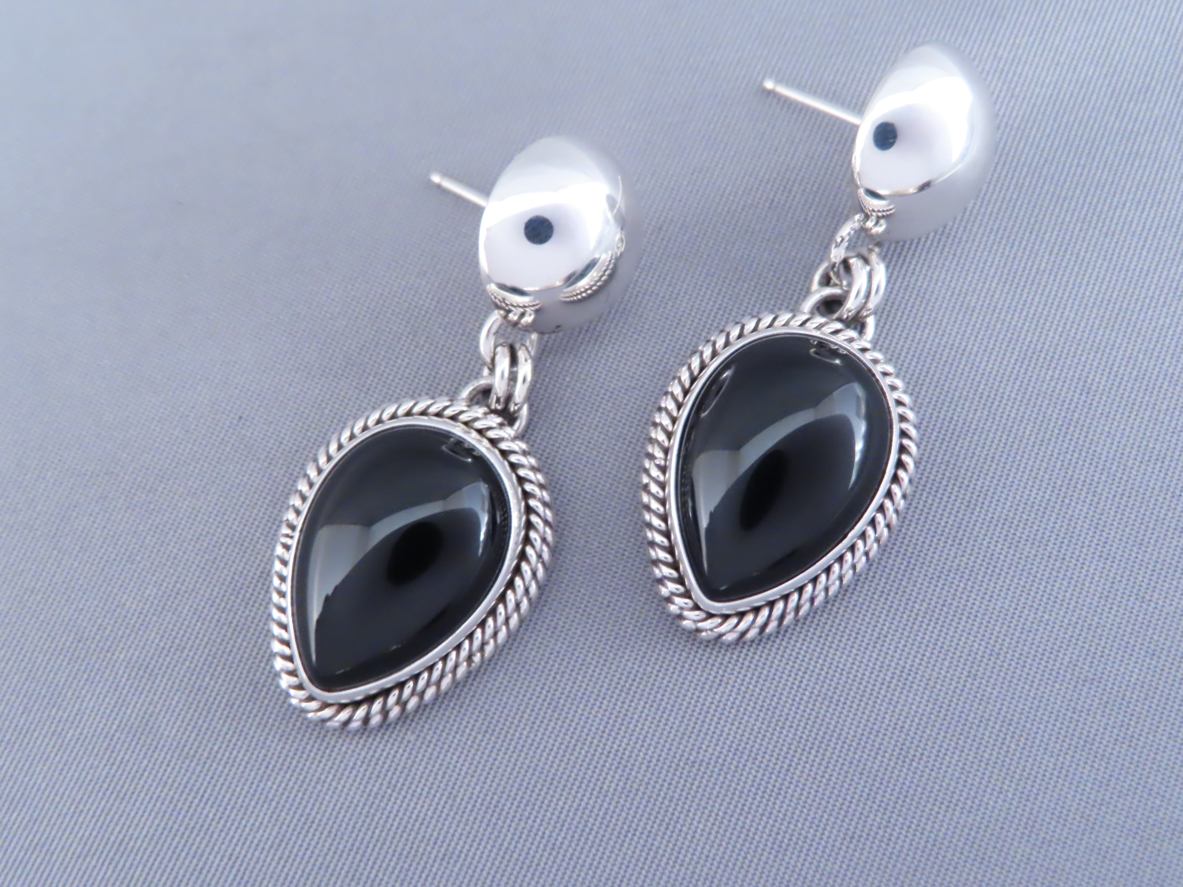 Lovely Onyx Earrings by Artie Yellowhorse! Smaller sterling silver and Black Onyx dangling post earrings by Native American (Navajo) jewelry artist, Artie Yellowhorse.