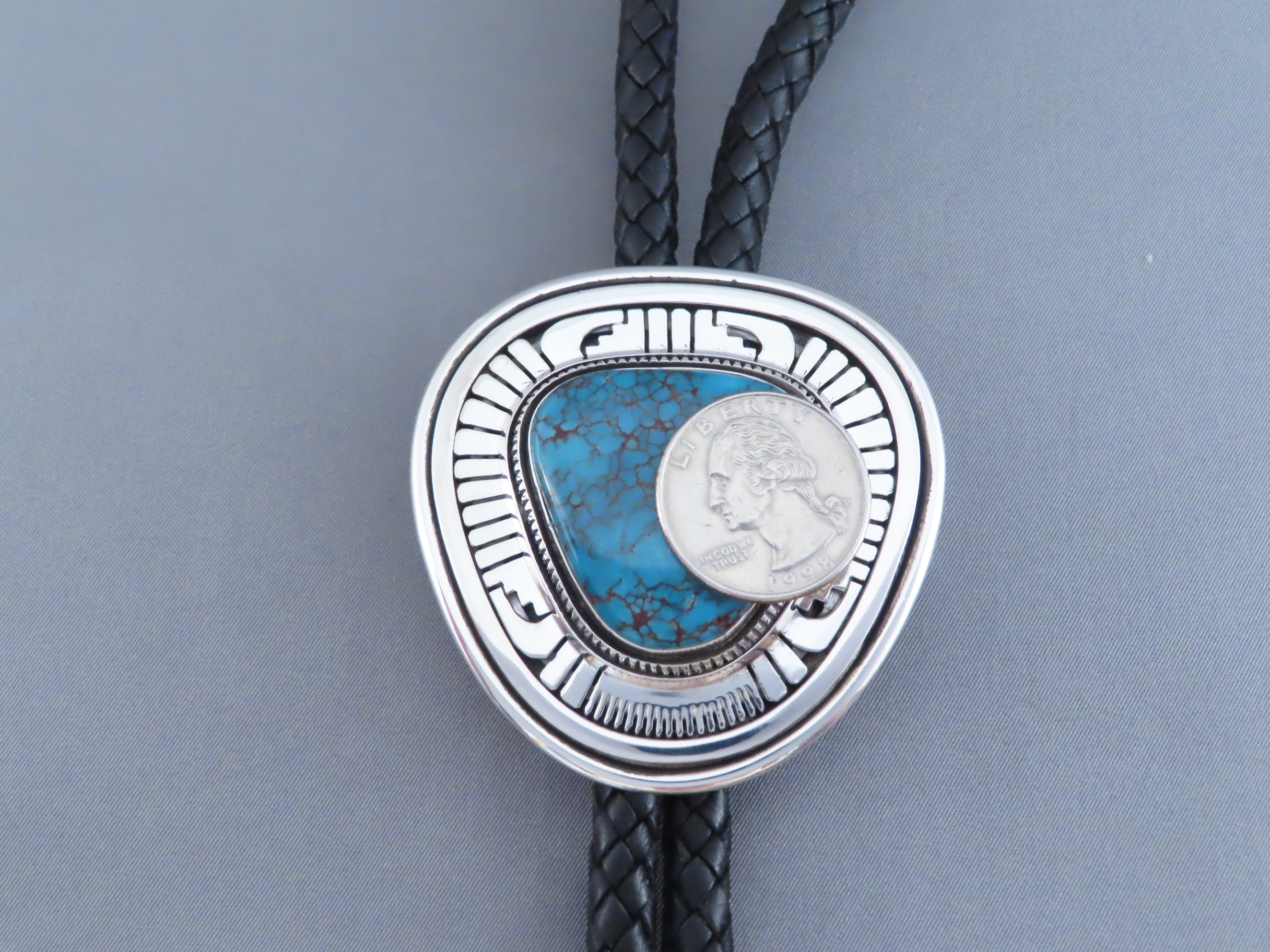 Red Mountain Turquoise Bolo Tie by Leonard Nez (Large)
