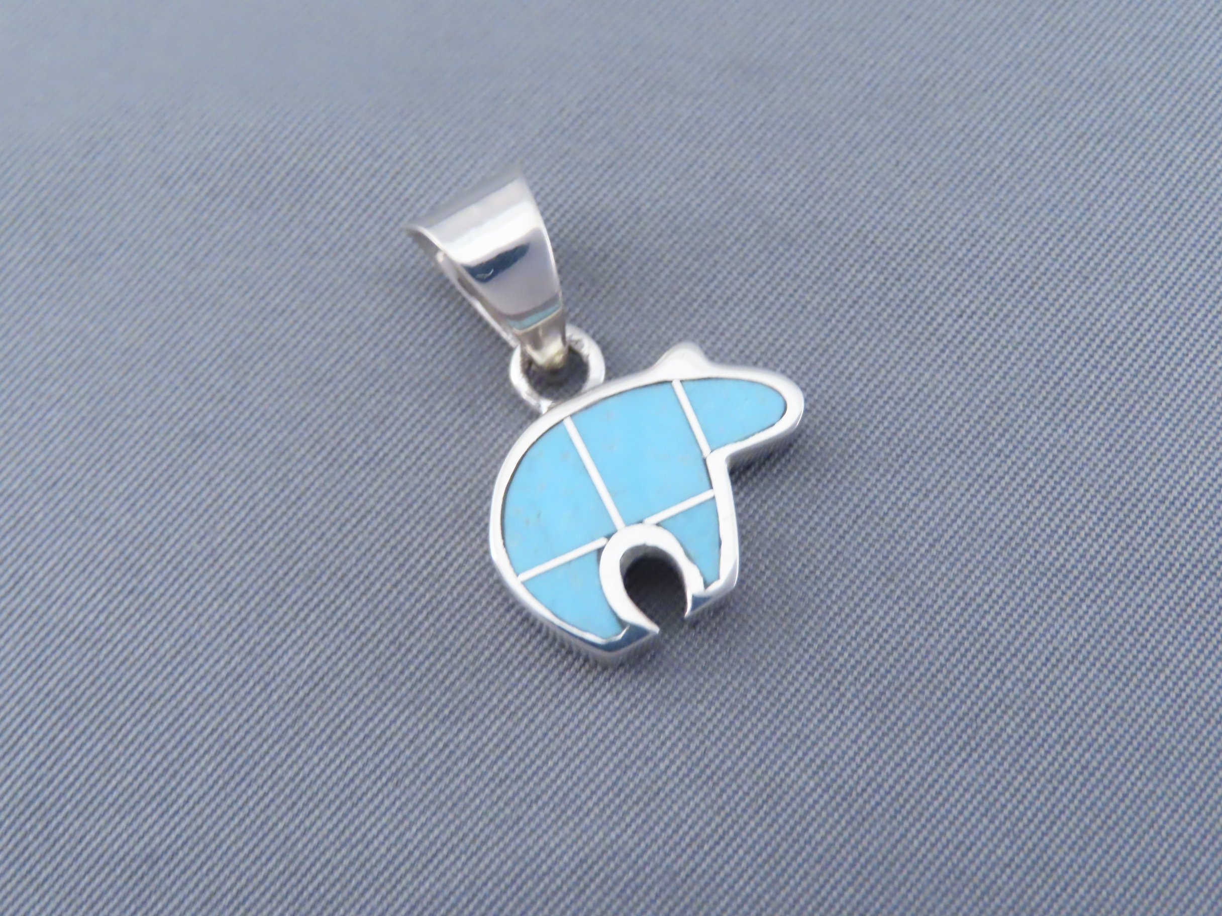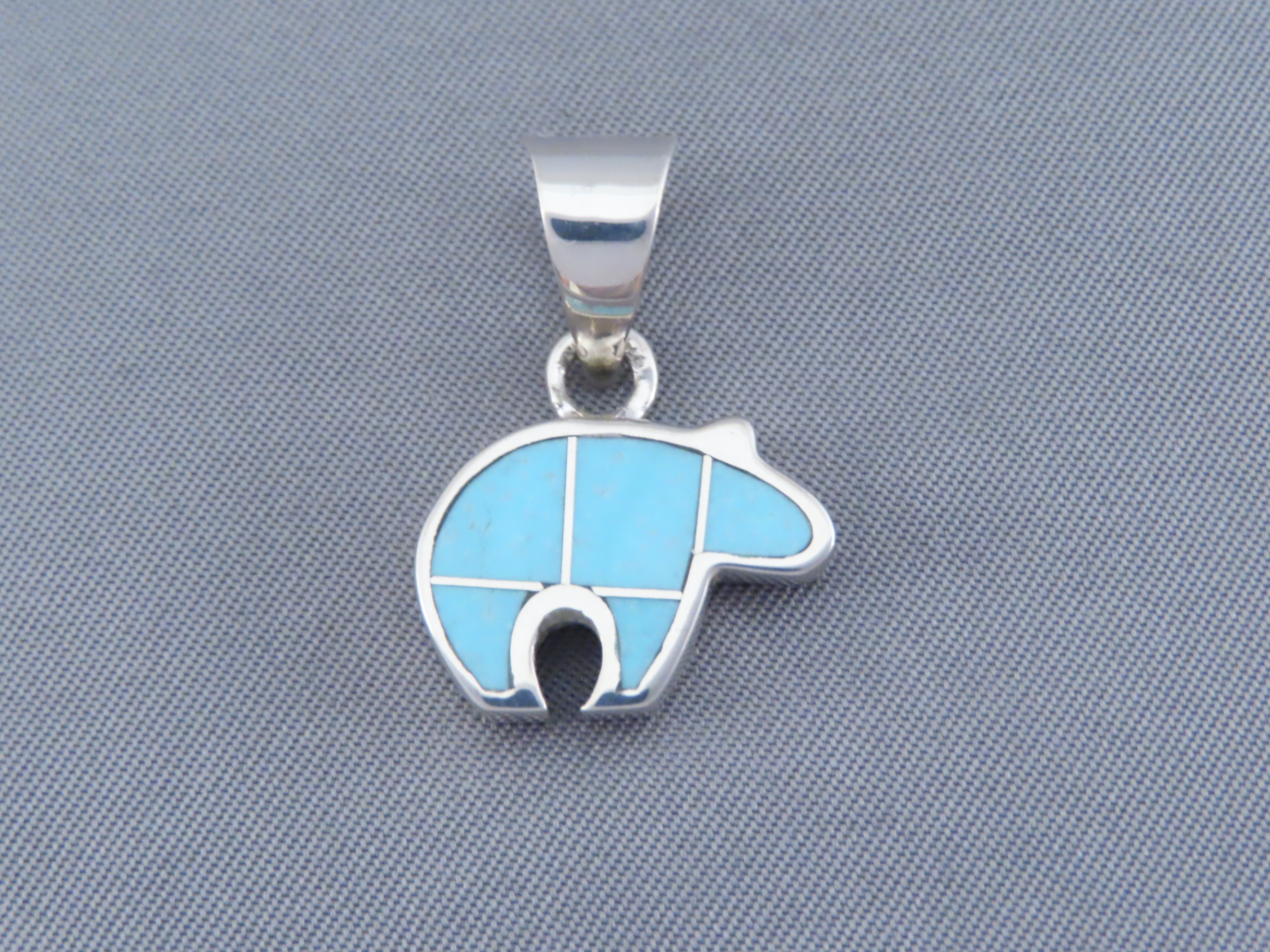 Turquoise Inlay Bear Pendant (small)