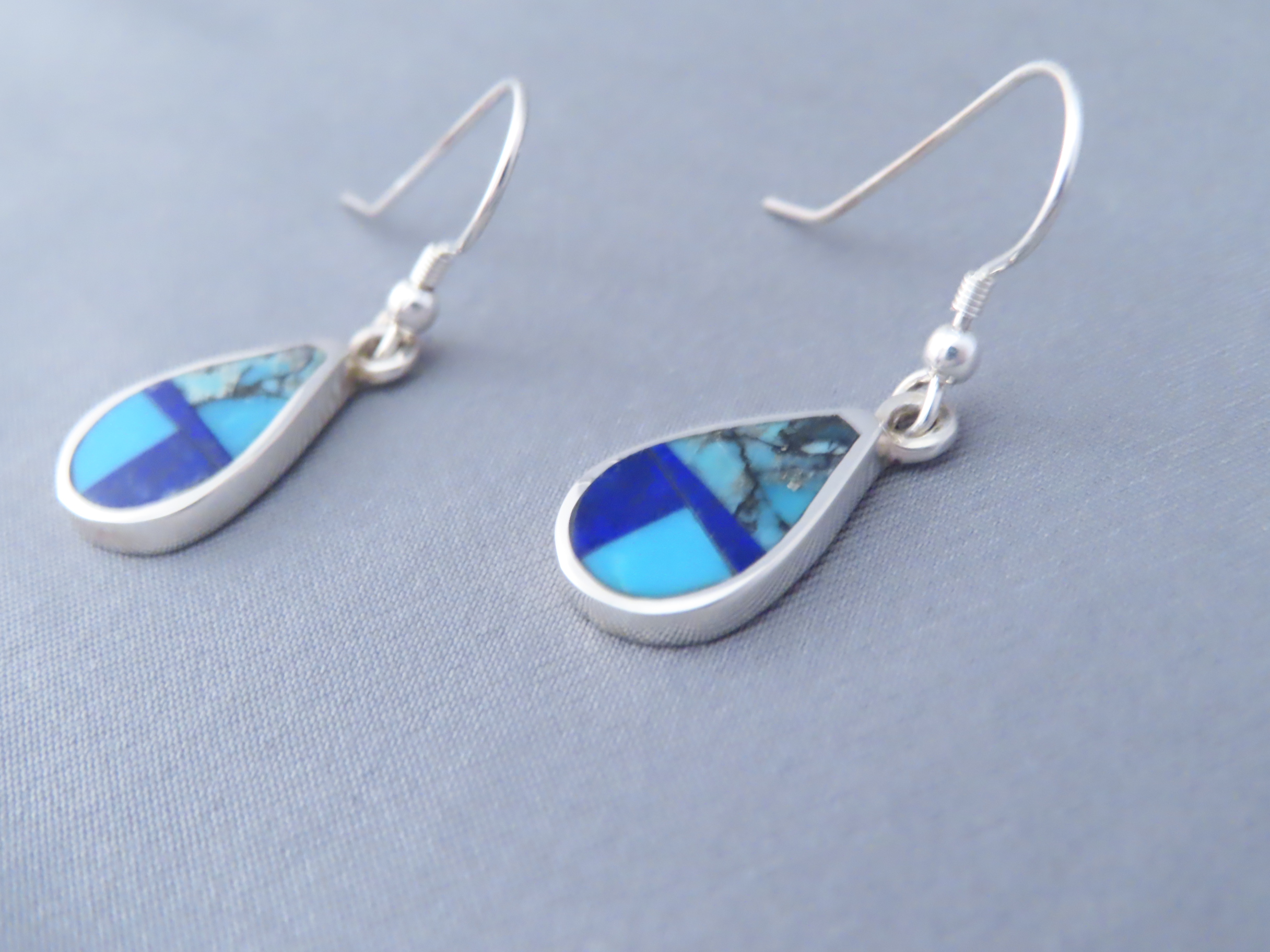 Turquoise & Lapis Inlay ‘Teardrop’ Earrings